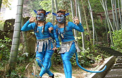 (巧用品牌资源,电影里的“阿凡达”变成了张家界的形象代言人。)