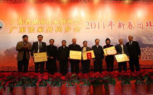 一句句问候饱含着同乡浓浓的情谊,一张张笑脸洋溢着丰收和成功的喜悦,一声声祝福满怀着对未来美好的向往。团拜会上,广东张家界商会会长、广东黄金铺集团有限公司董事长幸运致欢迎词,商会执行会长、深圳禾田居投资有限公司董事长莫伯平介绍了企业的发展经验,张家界同乡会会长伍金春、张家界商会秘书长周丰梅分别向与会会员汇报了同乡会和商会2011年的工作成绩及2012年的工作设想。广东省湖南张家界商会目前有会员单位86家。商会成立一年多来,经商会牵线搭桥引进我市的投资达到了20多亿元,实现了商会“立足广东、情系湘商、服务会员、贡献家乡”的宗旨。