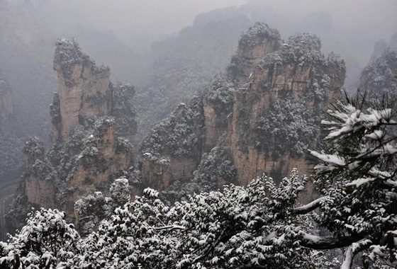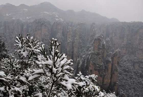张家界于1月3日起连续两日的降雪,为核心景区武陵源披上了一层圣洁的银装。由于本次降雪量不是特别大,核心景区除了因为天子山索道设备检修停运导致游览天子山不便外,其他景点交通基本畅通,黄龙洞、宝峰湖、张家界大鲵科技馆等外围景点也正常开放。