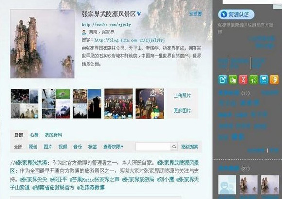 武陵源旅游局负责人表示,希望通过官方微博这个颇具影响力的平台,为来到张家界和即将要来张家界的中外客人提供吃、住、行、游、购、娱等方面的快捷、便利的咨询与服务。