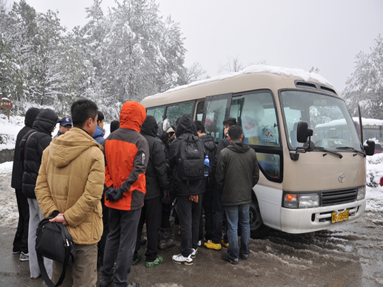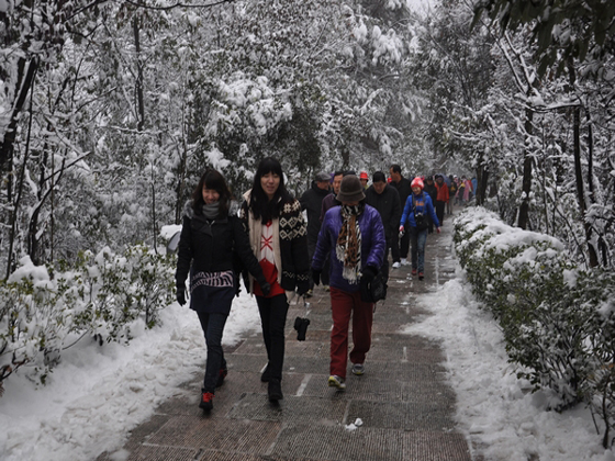 从四面八方慕名而来的游客兴致勃勃赏雪景
