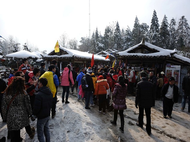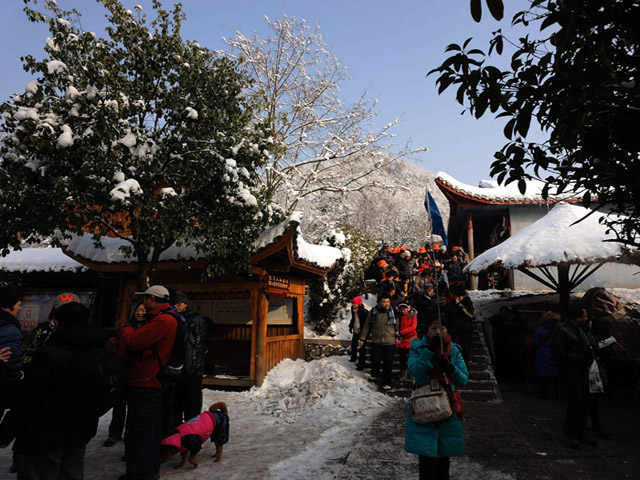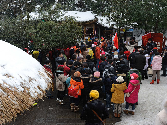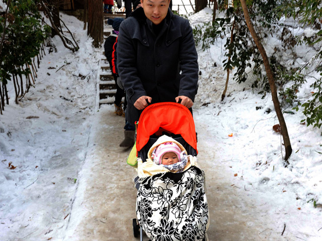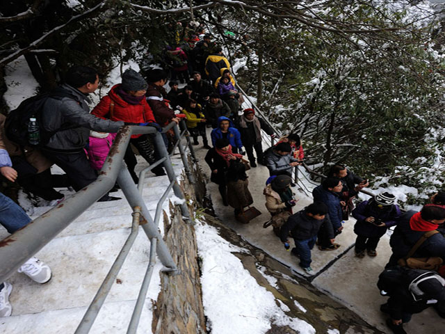 台阶上的积雪也阻挡不了游客们游玩的兴致