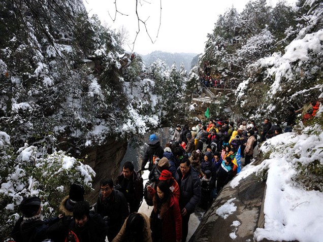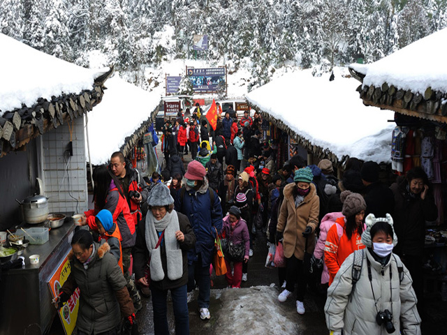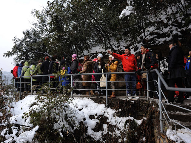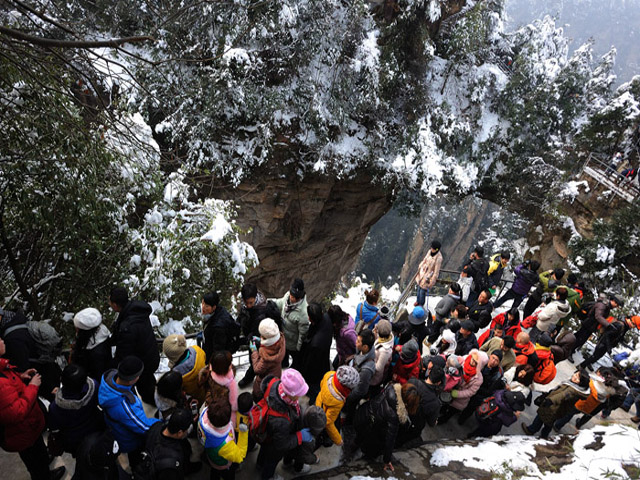 首页 旅游社区 旅游新闻 张家界雪后初晴 袁家界景区游客欢喜赏美景