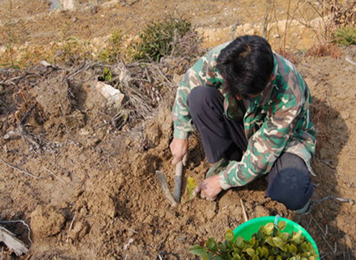 张家界村民挖土栽入油茶小树苗