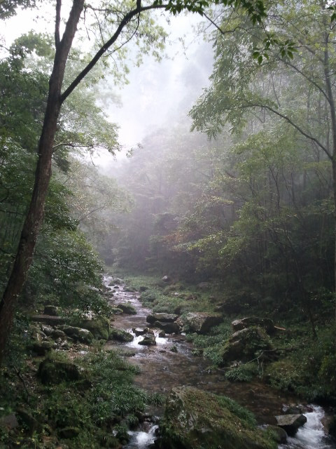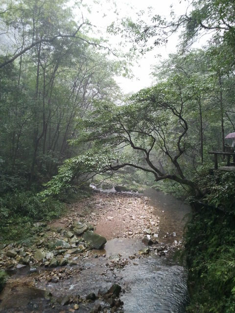 金鞭溪大峡谷是一个很美的峡谷,沿着这条溪一直走到一个叫水绕四门的地方,那里是森林公园三条溪流汇合的地方,也是张良的墓地所在(没有看到三条溪流和张良墓,可能没有导游的关系,水绕四门一点感觉也没有)。虽然雨景也不错,但湿漉漉的感觉实在扫兴。我和老公决定今天就到此为止。这里正好有个景区环保车站,坐上去标志门(应该就是天子山售票入口)的车,从标志门出来。坐上1元钱去武陵源汽车站的公交(其实也是小巴),到汽车站找到去市区的中巴(11元/人),结束了一天的游程。