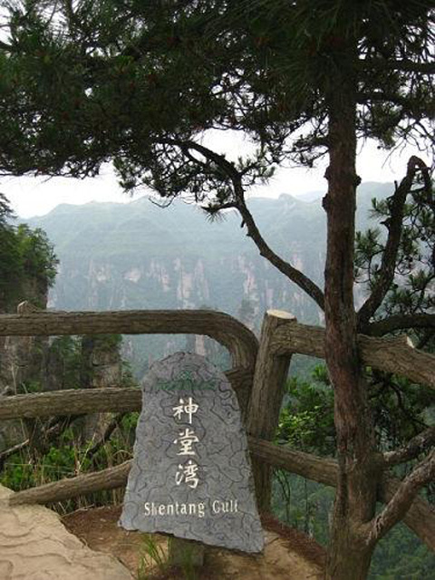 神堂湾观景台是天子山的最佳观景处,湾中林茂壑深,怪石森然,宛若刀戟,风起处,又如鼓声雷动,万马奔腾。传说向大坤在这里战败跳崖未死,继续在湾里练兵。而附近的点将台前则一排山峰列队而立,传说是向大坤众将领在他死后不愿屈服,化为山峰,仍在受向大坤的检阅。看完神堂湾和附近的贺龙公圆,沿着卧龙岭下山,到达十里画廊中段。