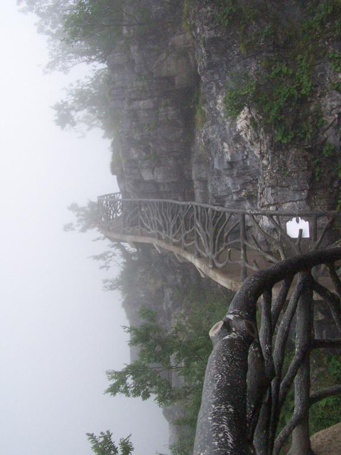 前年在峨眉山的温泉池子里我找到了游泳的感觉,去年在西门游泳池里我正式甩掉了旱鸭子的帽子,今年在雷波马湖我终于能够自由地在深水里遨游,在得到准许游泳的提示后我迫不及待地翻身入水,久旱遇甘霖的滋味又给我留下了深刻的记忆。午饭后吴导游火急火忙地带着我们赶赴天门山,在这儿可以乘坐世界最长的缆车,可以感受异常险峻的鬼谷栈道,可以俯视拥有99道拐的盘山公路,可以挑战999个陡峭阶梯才能到达的天门洞,当然这些都不在偶的话下。飞机因雨停飞却不是我能左右的了,也许双保险也不能让航空公司的人放下心,当晚回成都的计划搁浅了,我被强行送到了洗脚房反复被洗脚。