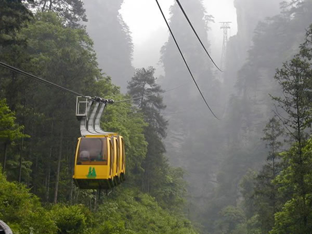坐索道从黄石寨下来,穿过浓浓的重雾,视野一下子变的清晰起来,浓雾和晴空的分界很明显,如黑白两道。从山脚下往上望去,半山腰以上,仍是白雾连天,几条索线斜抛而上,隐身不见,仿佛接入天际,如云梯,令人生出峰顶高不可言之感。
