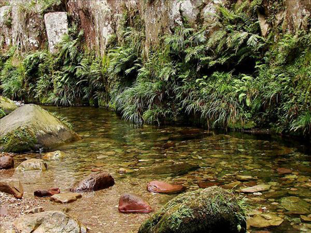 金鞭溪自黄石寨始,至水绕四门止,溪水两岸奇峰耸峙,怪石嶙峋,在山谷密林间若隐若现,溪旁皆石级小路,平坦通畅,于密林幽谷间宛转蜿蜒。溪水宛转流泻间,奇峰异石迭现,幻化组合着一幅幅令人叫绝的图景。溪水之中,不时可见有巨石卧立,想必是两岸峰峦的崩裂之石。这几日因为雨水的关系,溪水大增,溪滩的乱石几乎全被淹没,沿途又不断接受各山谷的溪水,至水绕四门,已全然是江河急流之势。