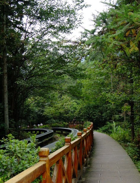 十里画廊的山谷非常开阔,比金鞭溪要宽敞很多,但这里的溪水却远比不上金鞭溪,不知这时的金鞭,是否还有昨日的气势?十里画廊的游路位于山谷的右边,也是由石板铺成,因为左边邻着溪水,所以这边用大石块砌高了,成为堤路。堤路的右边,是茂密的树林,让人看不清上面的景致,于是下到溪水边走,让眼睛能够左右均匀的端详。