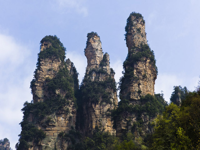 天子山爬起来挺累,因为坡度较陡,而且斜长的石阶之间并没有什么平路的缓冲,比起昨日的黄石寨,是要困难的多了,不过比起后者,有个好处便是人少,一路上来,没有见到一个上山的,下山的人也不多,不像昨天在几处拍照的景点几乎是无法立足,便是这一个好处,便盖掉爬山的诸多困难了,更何况,若非人少,“画廊酒家”的剩饭,也未必能落入我们的腹中。