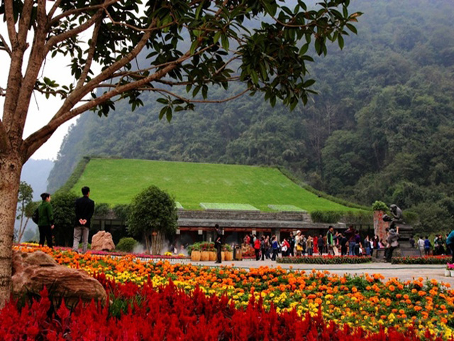 3月30日,张家界黄龙洞生态广场春意盎然、百花齐放,《烟雨张家界》将在黄龙洞哈利路亚音乐厅4月1日正式上演。