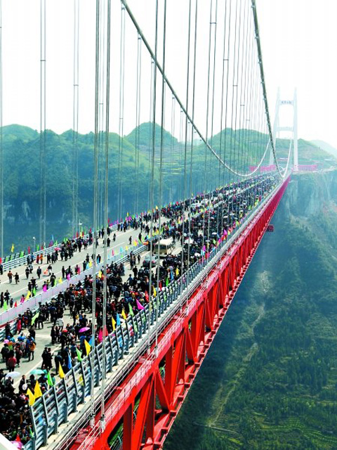 昨天,渝湘高速湖南吉茶段正式通车,渝湘高速全线贯通,重庆至湖南长沙仅需8个小时。其中,横跨湘西矮寨德夯大峡谷的矮寨大桥,跨度1176米,创跨径最大等四个世界第一。