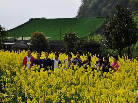 深圳游客在张家界油菜花区留影,他们的到来无疑为张家界增添一份快乐