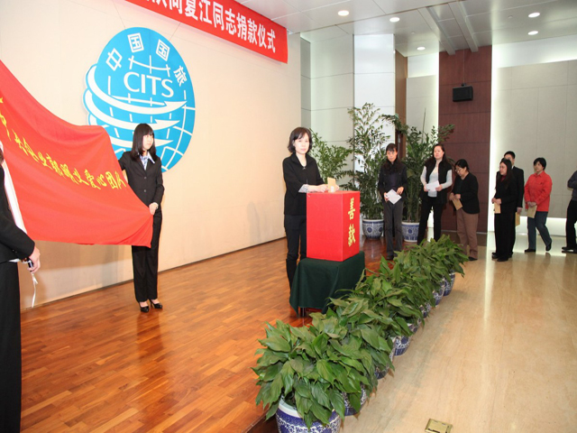 3月20日下午,国旅总社在十三层礼堂举行“国旅集团郭明义爱心团队向夏江捐款仪式”。捐款仪式前,杨晨光副书记,陈荣CEO等领导接见了夏江的家属,听取了夏江病情的介绍,并表示:国旅集团是央企,是夏江坚实的后盾,一定会尽全力帮助夏江度过这个难关。