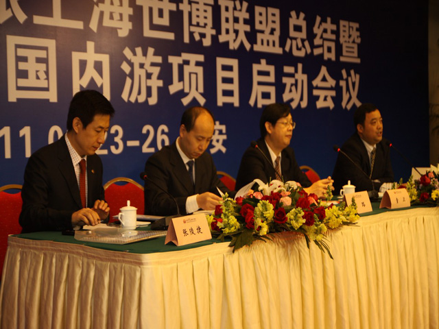 2011年2月23日--26日,由国旅总社投资与企业管理部与国内旅游部联合主办、西安国旅承办的“中国国旅上海世博联盟总结暨2011年国内游项目启动会议”在西安阳光国际酒店顺利召开。来自全国各地70家国旅集团理事会成员单位的141位代表出席了此次大会。