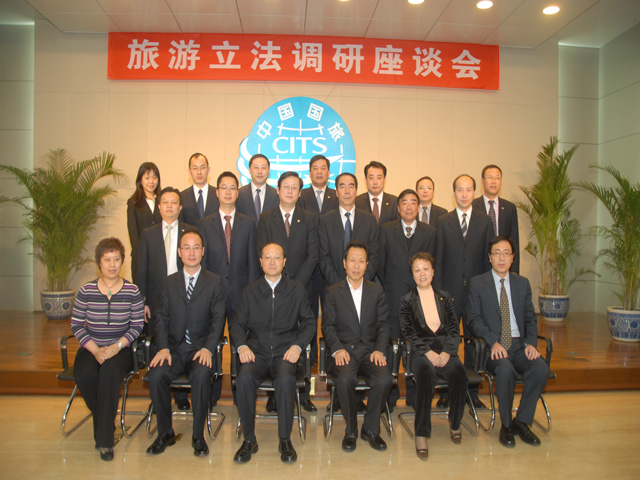 2011年3月28日下午,旅游立法领导小组副组长、国家旅游局局长邵琪伟率旅游立法调研组前来中国国际旅行社总社有限公司(以下简称“国旅总社”)进行调研工作。旅游立法调研组由来自全国人大财经委、国务院法制办、人力资源和社会保障部、国家工商总局、国家旅游局、旅游立法顾问组的专家及相关工作人员20人组成。中国国旅集团有限公司(以下简称“国旅集团”)董事长盖志新,集团党委常委彭辉以及集团总法律顾问张文等国旅集团领导和国旅总社领导,部分中层管理人员及两名导游代表等20多人出席了调研会。