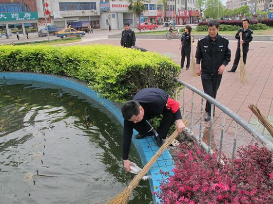 日前,张家界慈利交警大队三十余名民警到门前三包责任区进行爱国卫生大扫除。