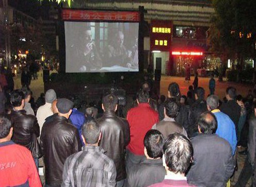 “今年3月31日开始放映以来,在此地已放30场,平均每场次观众人数达700多人,几乎场场爆满”。永定区电影公司副经理欧楚南说:“以前,我们也在广场放过,但没有天天放,现在只要不下雨,我们就天天放映,全年计划在人民广场放映300场。