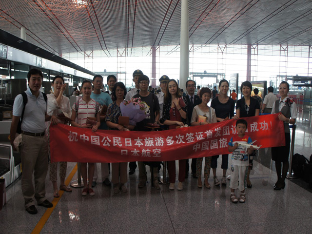 2011年7月1日,中国公民赴日本旅游个人签证推出新政策,中国公民可办理多次往返日本旅游个人签证。7月6日,国旅总社率先推出首发团,日本政府观光局北京事务所首席代表饭岛康宏前往首都机场欢送,为国旅首发团10位客人颁发“热烈祝贺您,成为日本国政府对中国个人观光客,三年多次往返签证的第一号获签者”认定证书。