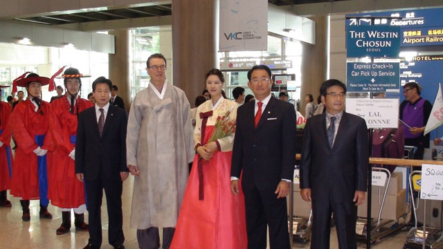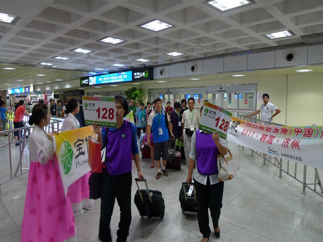 宝健万人团抵达韩国的机场,受到热烈欢迎