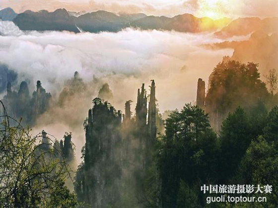 4月19日,从国家旅游局相关部门获悉,即将在今年“中国旅游日”出版发行的全国首本“旅游国礼”画册中,共收录了100幅中国旅游摄影大赛获奖作品,其中有两幅为张家界风光。