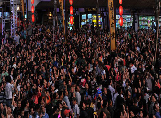 在现场,歌声、笑声、欢呼声响成一片,各种肤色、各种语言的游客,与土家阿妹对起山歌,跳着民舞,忘情狂欢。“真没想到有这么多人,看来‘凑热闹’是来对地方了,今晚很开心,很值。”来自深圳的游客晓芸告诉记者。
