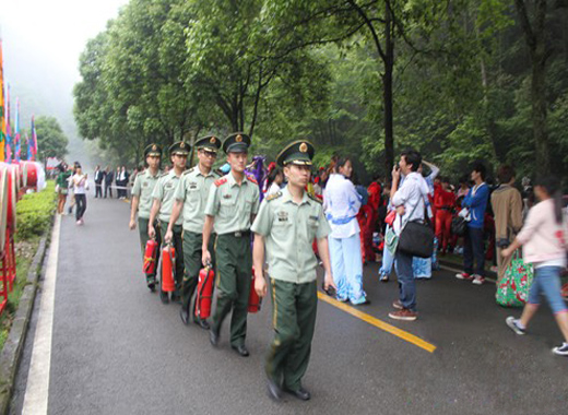 二是19日上午老磨弯广场,2012中国旅游日主题启动仪式在这里举行,大队部署官兵,在重点部位守卫,随时处于临战状态,预防火灾突发事故;