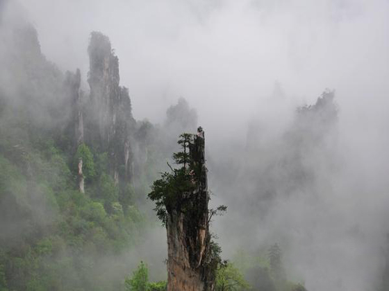 1、由于出行前没有咨询张家界的天气,到张家界后二天都是阴雨天,导致在张家界的二天看到的景点不多,很多地方是白雾一片,但也时风刮开后可以看到漂亮的云海,这个倒不说,由于去之前在广州天气良好,气温也高,我们带的衣服都不多,在山顶上晚上很冷,团友们都在向亲亲石家的老石借衣服。由于山上气候变化大,提醒以后去的亲们要注意那边的天气情况,衣物要多带点,最好是提前咨询下天气情况。