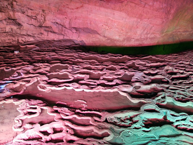 “龙王宝座”,那是一个巨大的空洞,据说里面可以容纳15个人左右。因为怕跟不上导游的步伐,所以只好做罢了。感觉那龙王的威信还在那宝座上,得离远点,赶紧进入下个看点了。