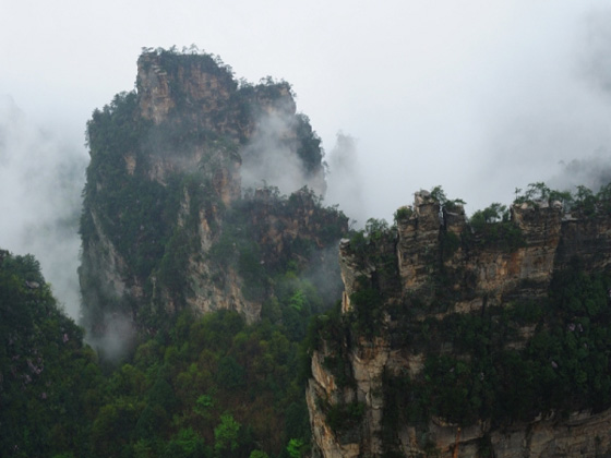 袁家界离百龙天梯上站只有几分钟车程,很快就到,下了车沿路往第一个景点迷魂台走去,好一座迷魂台啊,只见眼前高低起伏的山峰,如楼如阁,如台如榭、千姿百态、景象万千。在雨雾之中若隐若现,若明若暗,幽谷绝壁、人间仙境一般,每迈动一步,幽壑间的山峰都会变换出万千种姿态,实在是绝美至极啊。