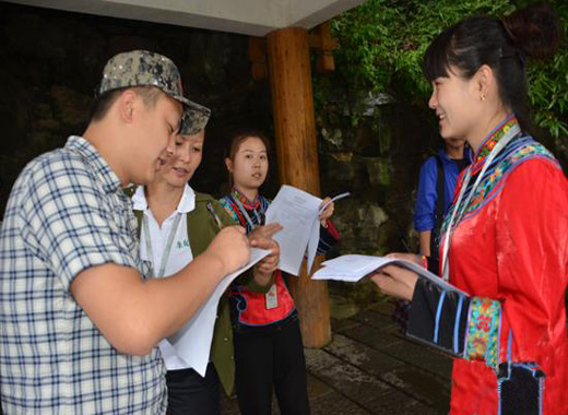 “您好,我们是景区工作人员,欢迎您对我们的服务提出宝贵意见……”。5月28日,张家界市武陵源区旅游局联合市旅游局、吉首大学旅游学院、市旅游协会景区分会在景区组织开展游客满意度问卷调查,现场征求游客对景区建设管理、服务水平等方面的意见和建议。