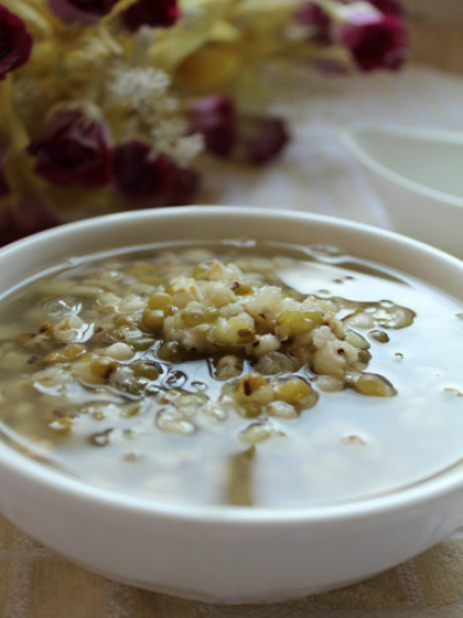 绿豆汤是老祖宗们留下的消暑传统,因此在我们这些白领里面的中老年人群是它的忠实粉丝。中医认为,绿豆具有消暑益气、清热解毒、润喉止渴的功效,能预防中暑,治疗食物中毒等。现代医学研究也认为,绿豆营养价值较高,蛋白质含量比鸡肉还多。有关实验还表明,绿豆可能对治疗动脉粥样硬化,减少血液中的胆固醇及保肝等均有明显作用,再次重申外面的饭菜太多油腻,配绿豆汤正好合适,老人们留下的传统果然没错的!不过还要注意一点绿豆性寒,不宜与海鲜同时食用。