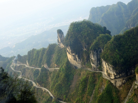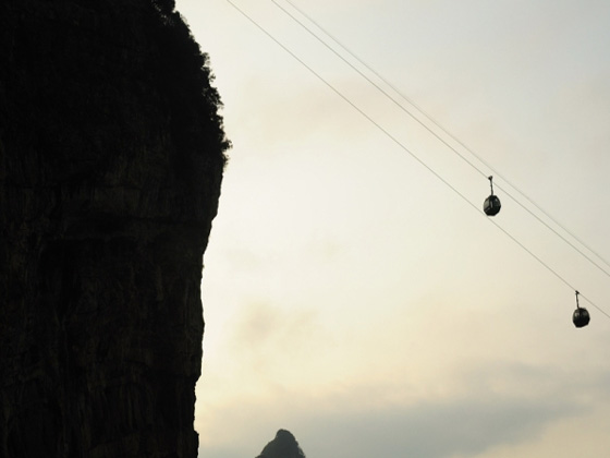 时间逼近15:00,由于天门山的索道和环保车有时间限制,我们必须脚步加快了,一路上捭阖,求儿洞,天门山寺等等均一带而过,到了樱桃湾小缆车乘降处,这里有两个选择,一是坐小缆车可以直达天门山最高处云梦仙顶的缆车乘降站,23元一个人,二是沿着栈道走到云梦仙顶,估计全程一小时左右,适合有体力人士。