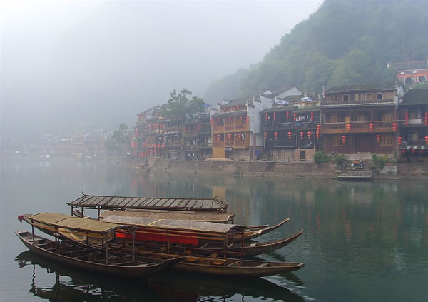 沱江上,雾岚如流纱般飘动起舞;沱江边,鳞次栉比的吊脚楼韵味十足。来自上海的江先生,今天一大早便徜徉在凤凰沱江边欣赏美景,并不时发出“太美了”的感叹。