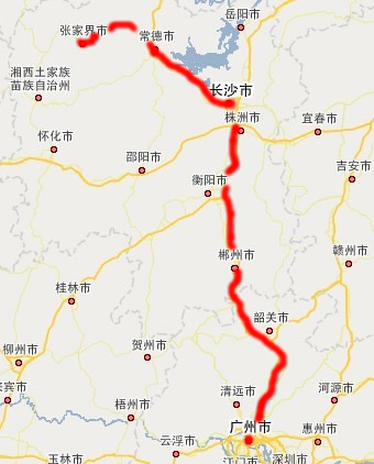 广州方向到张家界自驾车路线