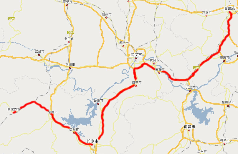自驾车途经城市:合肥—→武汉—(经京珠高速)→ 长沙—(经长常高速)→ 常德—(经常张高速)→ 张家界市-→ 张家界国家森林公园(或武陵源风景区)