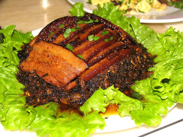 土家扣肉,以肥而不腻著名。就算你正在节食减肥,这个菜也不可不试。当你大胆地嚼一块,满嘴流油的时候,你会感觉他绝对没有红烧肉那么的肥腻。干咸菜吸油,五花肉又会带着咸菜的清香 ,梅菜和肥五花肉的搭配真的是没得说。干咸菜扣肉,有人把他归为客家菜,有人把他归为赣菜,但管他是什么菜系,它的确是南方有着悠久历史的一道家常菜。