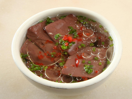 龙脂猪血,是指加工后的猪血特别嫩滑,有如龙肝风脂一般美味。龙脂猪血用新鲜猪血味原料,制好的猪血辅以干椒末、冬排菜和芝麻油,味微辣而香脆,爽滑鲜嫩,十分可口。特别是在冬天,吃上一碗热气腾腾的猪血,能使周身暖和,五腑受用。