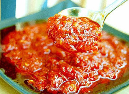 永丰辣酱,产于湖南省双峰县永丰镇。它从该地所产的一种肉质肥厚、辣而带甜的灯笼椒为主要原料,搀拌一定份量的小麦、黄豆、糯米,依传统配方、科学办法晒制而成。它色艳气香,辣中带甜,清新爽口,具有生津开胃,增强食欲,帮助消化等功效。不含防腐剂、添加剂,没有高脂肪、高蛋白、胆固醇,是十分理想的保健食品。
