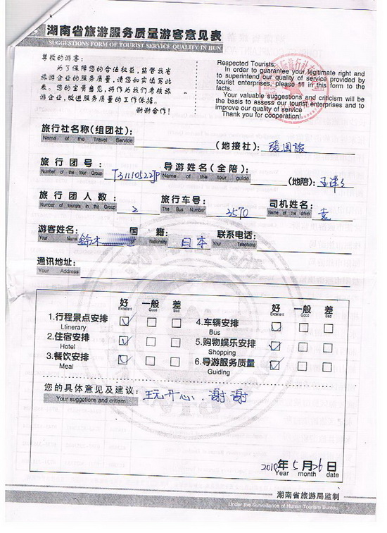 这次公司给我安排的是日本籍的散客团。2人独立小班团,专车转导。日本客人一般来张家界就是希望体验不一样的自然风光,公司按照客人的要求,推荐了张家界国家森林公园、天子山、凤凰古镇的旅游线路。对于带外团的导游来说,不仅要注重与客人的交流沟通,还要给客人做出详细的讲解。