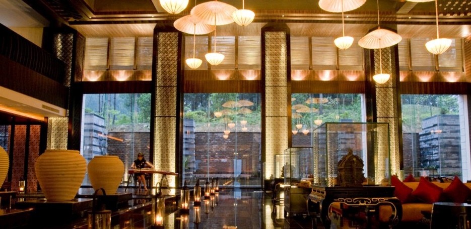 从大堂吧即可欣赏到美丽的花园和俊秀的青山,同时不失有宁静,惬意,放松之感,夜间伴着悠扬的轻音乐会别有一番风味。酒水牌上提供有软饮,当地特色饮料,鸡尾酒,雪碧和葡萄酒,晚上6点有小点心提供。