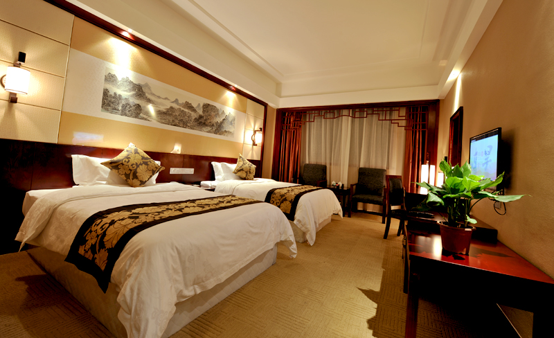 凤凰凤廷国际大酒店在空间布局上除了有一个超大开敞的豪华大堂和对称结构的四方形天井,在酒店的每层还专门配置了露天花园,在酒店的六楼还特别设计了面积达200平方米的空中亭台,贮立在亭台和观山澜水。酒店内部功能齐全,配套设施完善,包括套房、商务房、豪华房、屋顶洋房、酒店式公寓等约280余间/套。客房内设施齐全,四季中央空调衡温,宾客可直拨国内外长途,并有免费光纤网络接入。每间房的背景墙由各大画家结合凤凰古香古色的风土人情亲手绘制。