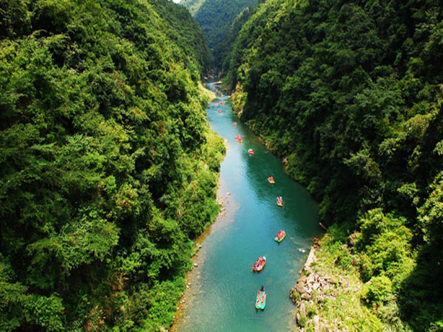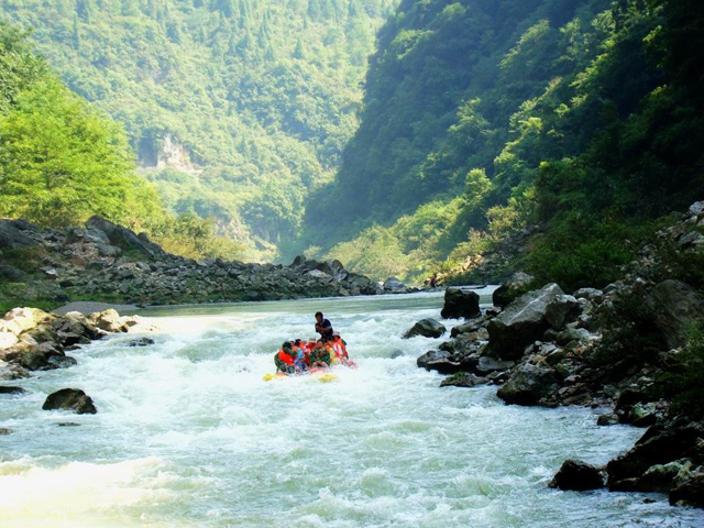 该景区两岸多为原始次森林,葱葱郁郁,水流湍急,碧绿清亮,有十里绝壁,十里瀑泉,十里画卷,十里洞天的美誉。其中有急流险滩108处,大小瀑布20处。漂流,穿急流,越险滩,闯狭谷,捕激浪,有惊无险,回味无穷。特别是哈妮宫、三角岩、鸡笼门、遇仙峡(捏土)、阎王滩、落水坑、梦思峡、鲤鱼剖肚、三大炮等景点,无不令人叫绝观止。