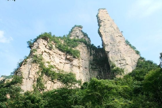 这里数十座绝壁,参差不齐,似残垣断壁,场面壮观。相传此乃杨家“天波府”的遗址。