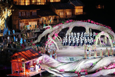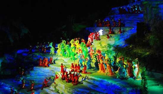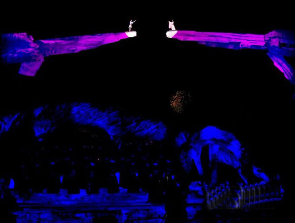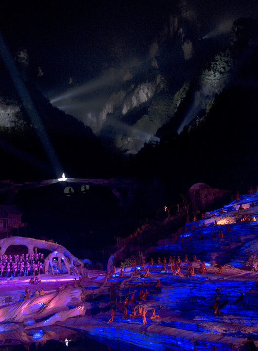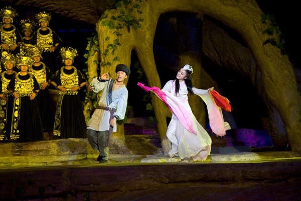 夏秋交季,一百年过去了、秋去冬来,寒风白雪,刘海哥和白狐姐姐像两座石峰,岿然不动,固执的守望着。终于一千年过去了,玉皇大帝被感动了,春暖花开的日子,玉皇大帝与七仙女都来到了天门山。让青山为他们做媒,天地为他们作证,溪水为他们动容,白云为他们喝彩。王母架起了续情桥,让他们深情的走到了一起。