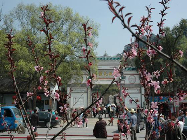 下联讲述的则是“刘禹锡桃花源题字刻匾”的动人故事。唐代诗豪刘禹锡,又有“太子宾客”之称。年轻时,刘禹锡曾被贬至朗州任司马。为了排遣郁闷,曾经常到离常德不远的桃花源散心。此时的桃花源乃初兴时期,以桃花观为主的建筑群才初具规模。