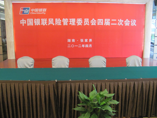 2012年4月9日——2012年4月12日“中国银联风险管理委员会四届二次会议”在张家界青和锦江国际酒店召开,参会人数:38人,参会单位:中国银联。