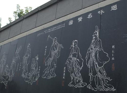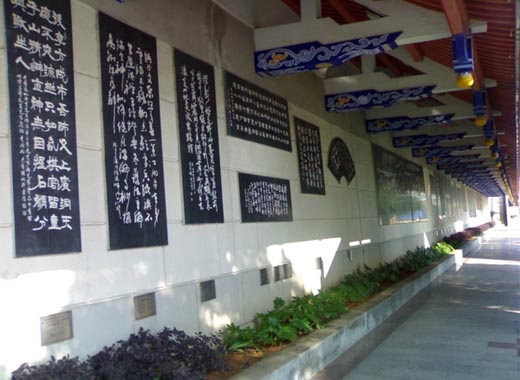 4.传统工艺与现代技术相结合的镌刻。经过长期摸索,诗墙创新采用以机械喷砂为主、传统工艺为辅的现代镌刻工艺,速度快、质量好,能很好地保持原作品的神韵和风貌;阳刻、阴刻、平槽、圆槽、龟槽、角槽、豆版粒等一应俱全;并创出了“黑白灰”三色镌刻技术。