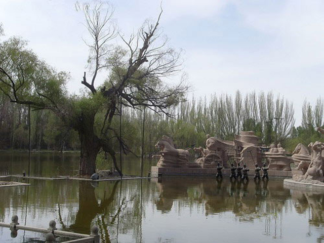 酒泉西汉胜迹又称泉湖公园和酒泉公园,位于酒泉市东2公里处,因园中有酒泉而得名,已有两千多年的历史,现为一座集古典园林、天然湖、文化游憩、趣味娱乐于一体的综合性公园。酒泉,因传说泉中有金,故又名“金泉”。史传汉武帝元狩二年(公元前121年),骠骑将军霍去病西征匈奴,大获全胜于此,汉武帝赐御酒以赏,霍去病以功在全军,人多酒少,遂倾酒于泉中,与将士共饮,故有“酒泉”之名。